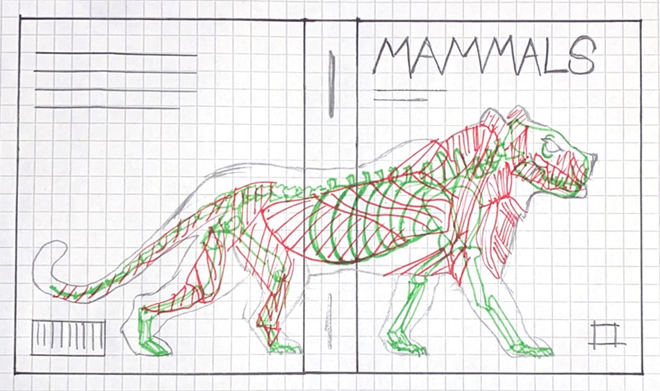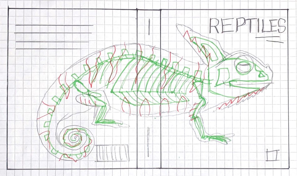 After exploring a number of concepts for these covers, the design direction I ultimately followed involved an x-ray like image. The idea was to show the body of an animal relating to the title, so a mammal, amphibian, or reptile for each cover. With a deeper dive into what makes up that animal. So when the book's content discusses what makes the class of animal, the book's cover then displays it.